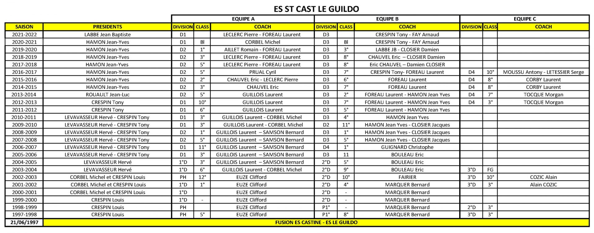 Le club de football de St Cast Le Guildo ARCHIVES BILANS Résultats & classements par saison Fiers d' être Rouges et Noirs ESSCLG SAISON 2024/2025 SAISON 2023/2024 SAISON 2022/2023 SAISON 2021/2022 SAISON 2020/2021 BILAN 2019/2020 BILAN 2018/2019 BILAN 2017/2018 BILAN 2016/2017 2019/2020 2018/2019 2017/2018 2016/2017 BILAN 2015/2016 BILAN 2014/2015 BILAN 2013/2014 BILAN 2012/2013 2015/2016 2014/2015 2013/2014 2012/2013 2011/2012 2006/2007 2001/2002 2010/2011 2005/2006 2009/2010 2004/2005 2008/2009 2003/2004 2007/2008 2002/2003 SAISON 2011/2012 SAISON 2010/2011 SAISON 2009/2010 SAISON 2008/2009 SAISON 2007/2008 SAISON 2006/2007 SAISON 2005/2006 SAISON 2004/2005 SAISON 2003/2004 SAISON 2002/2003 SAISON 2001/2002